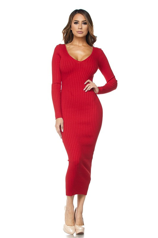 V neck long sleeve dress that can be worn off the shoulder. Great stretch, ribbed design.